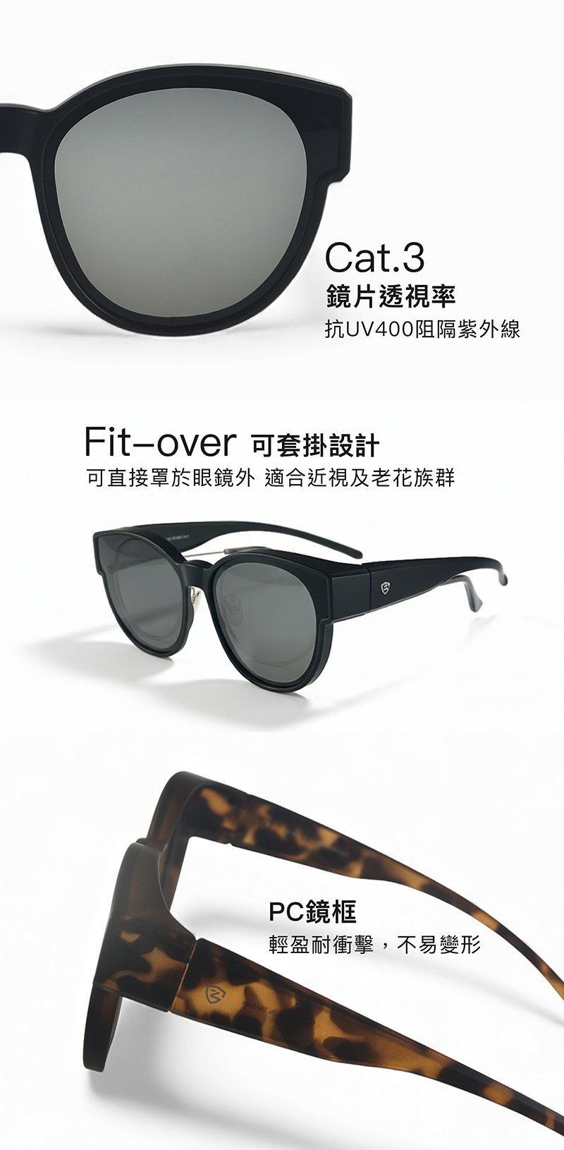 ● Fit-Over 可套掛設計:可直接套掛在眼鏡外,輕鬆適應近視眼及老花族群。