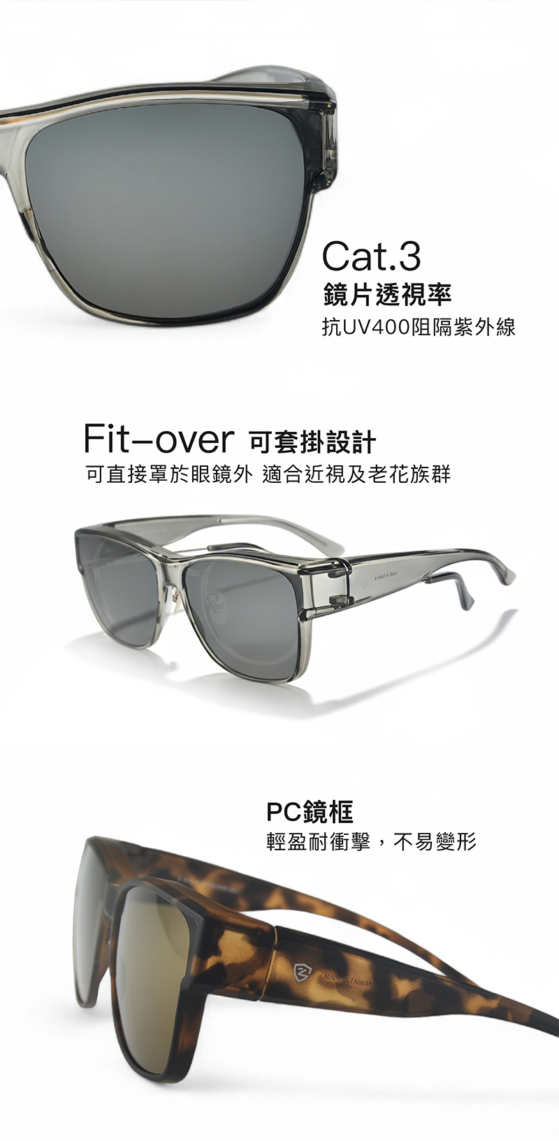 ● Fit-Over 可套掛設計:可直接套掛在眼鏡外,輕鬆適應近視眼及老花族群。