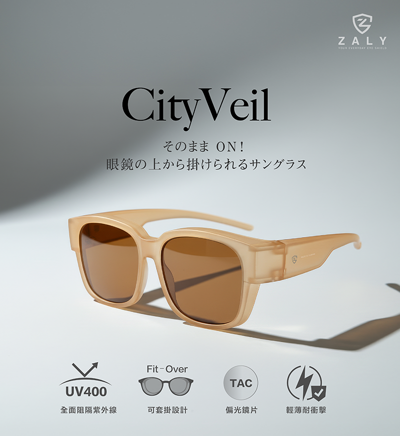 CityVeil 系列的 Fit-Over 設計適用於各種近視眼鏡和老花眼鏡,方便配戴者直接套掛在眼鏡外,輕鬆應對室內外光線轉換。