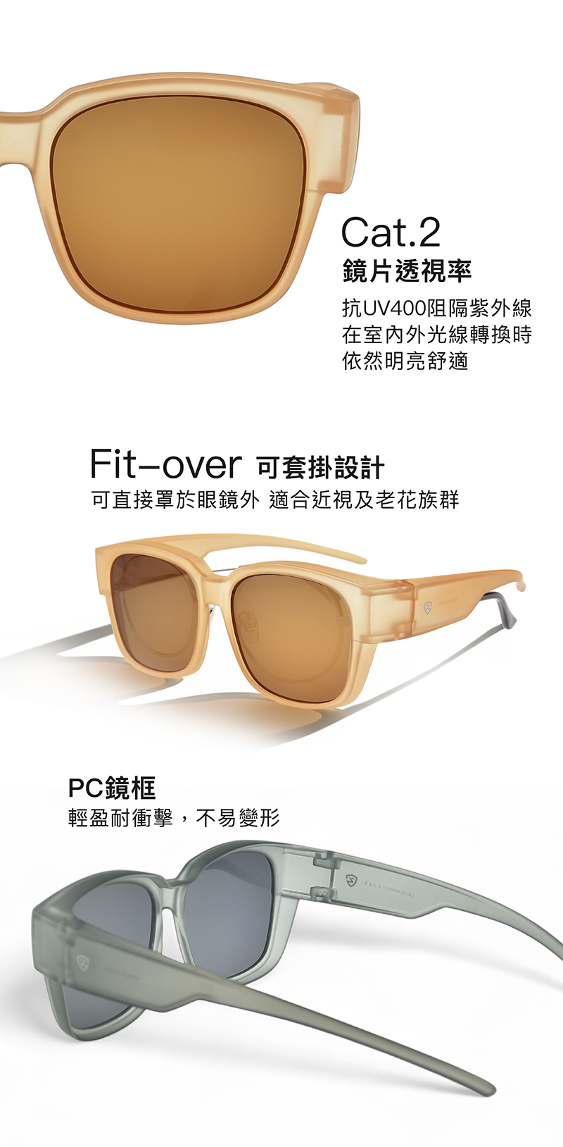 ● Fit-Over 可套掛設計:可直接套掛在眼鏡外,輕鬆適應近視眼及老花族群。